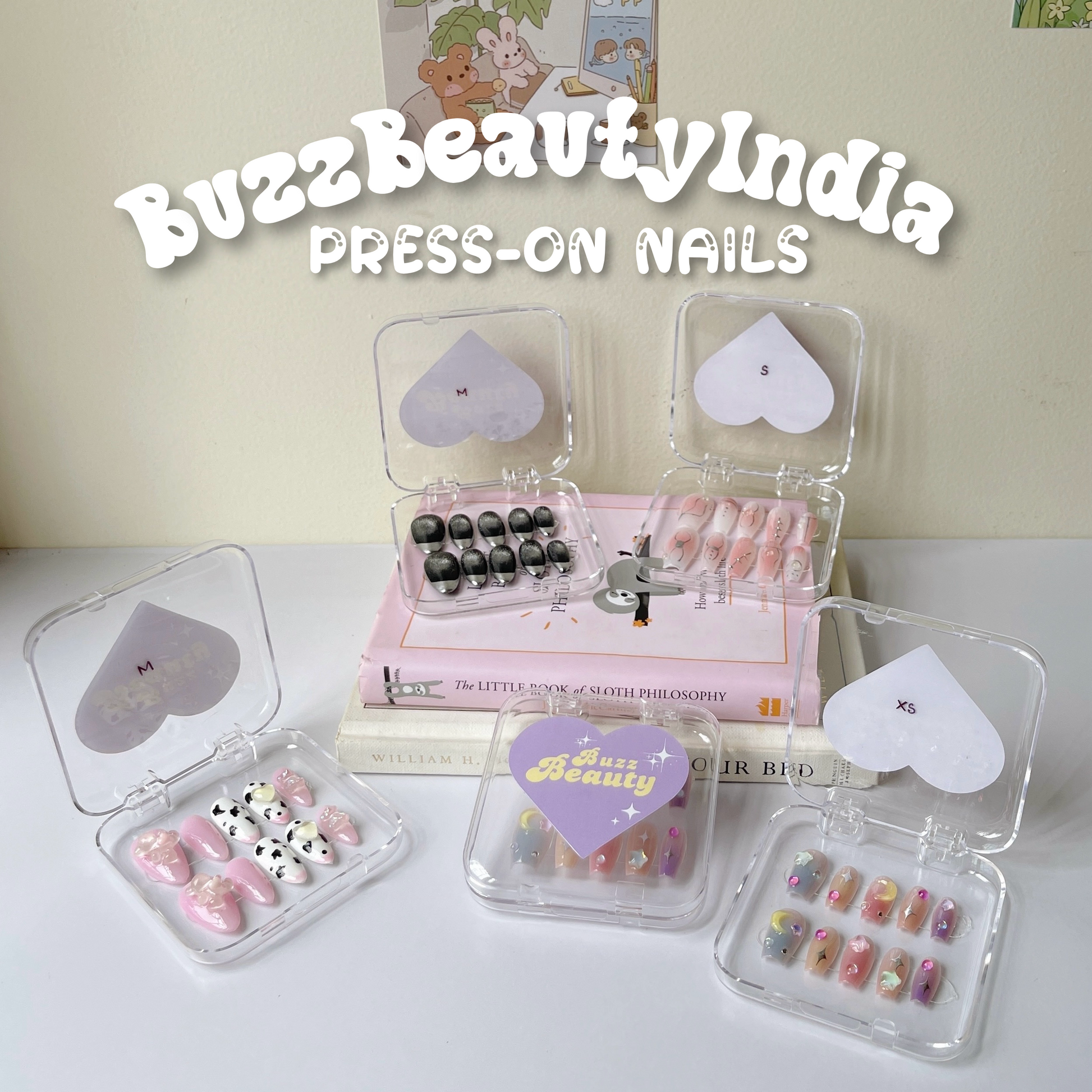 Get the perfect manicure in minutes with our adorable press-on nails! These cutesy designs are the ideal solution when you want the look of extensions without the hefty price tag. Each set includes a buffer, a cuticle pusher, and high-quality glue, giving you everything you need for a flawless, long-lasting application. Glam up your nails effortlessly and affordably with BuzzBeautyIndia’s press-on nails!